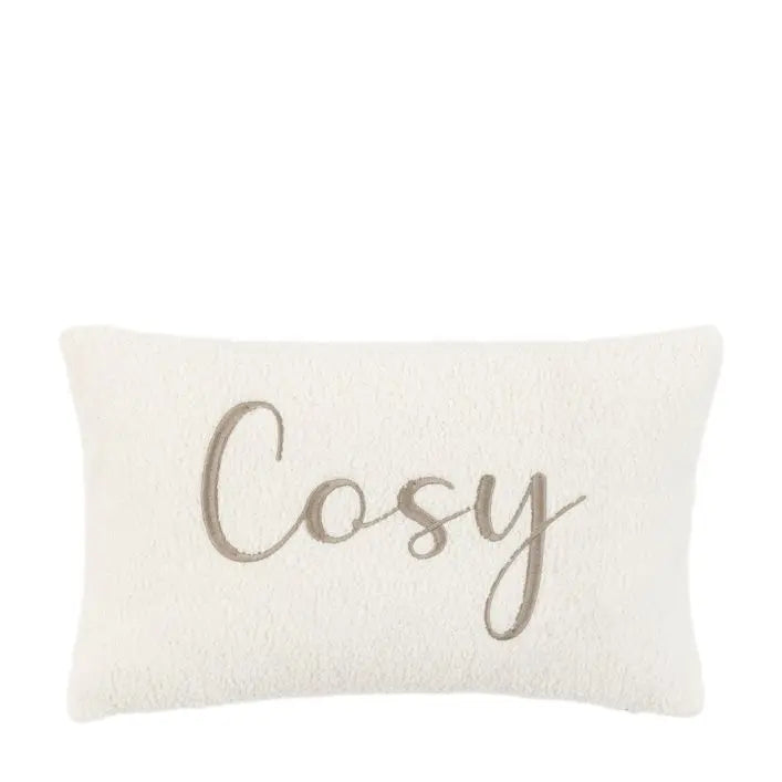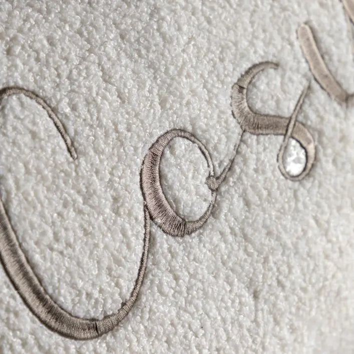 In super soft boucle fleece and embroidered lettering, nothing says cosy like this cosy cushion.