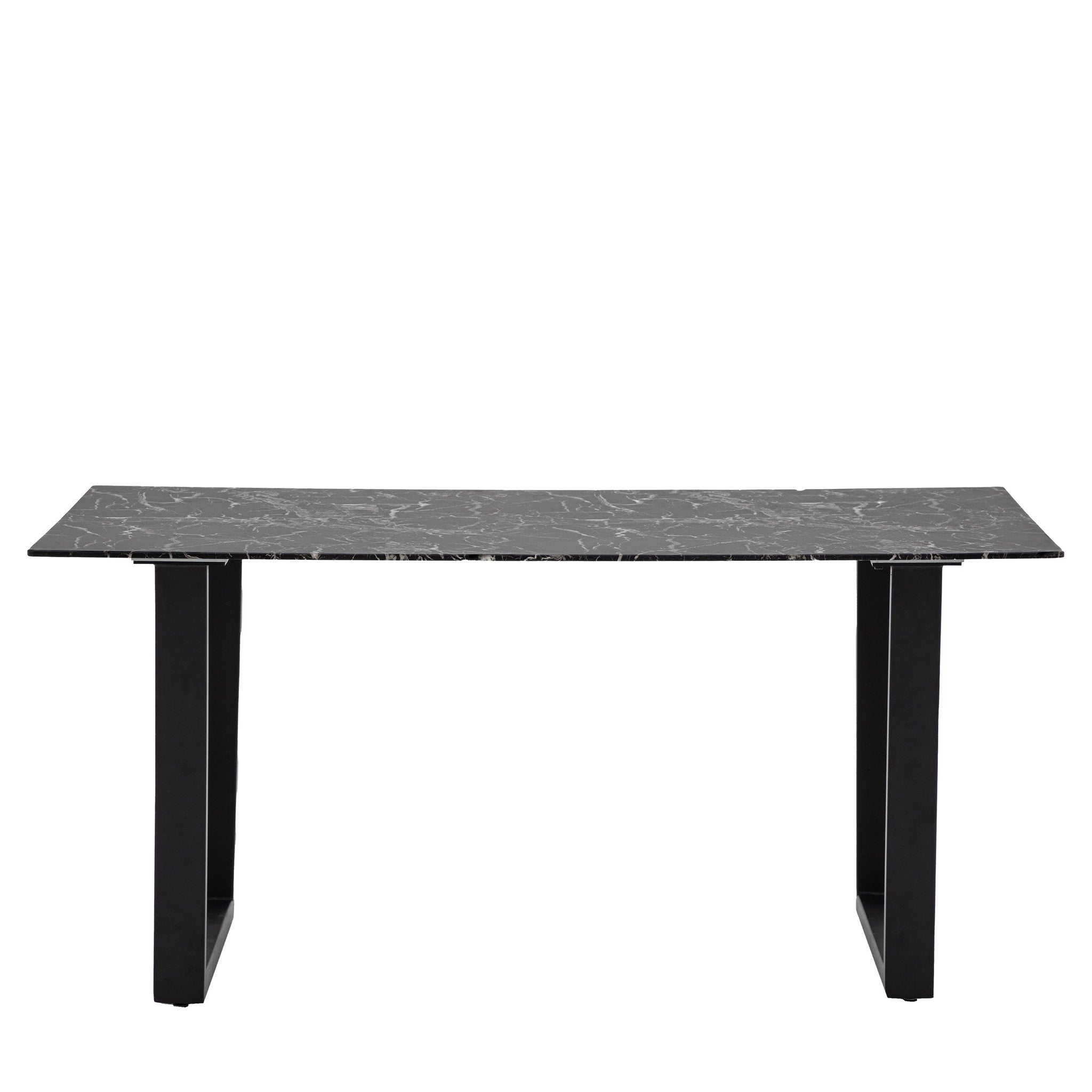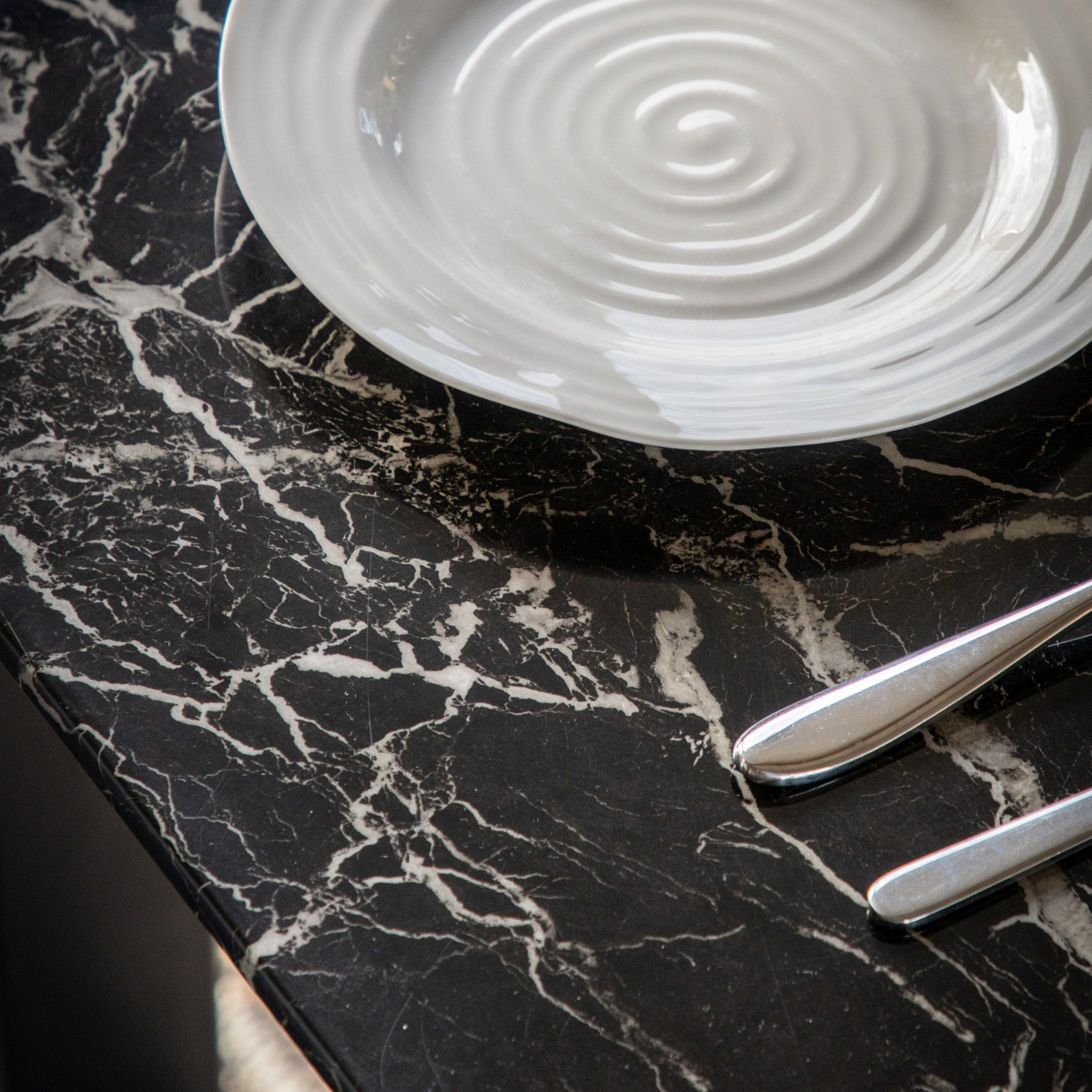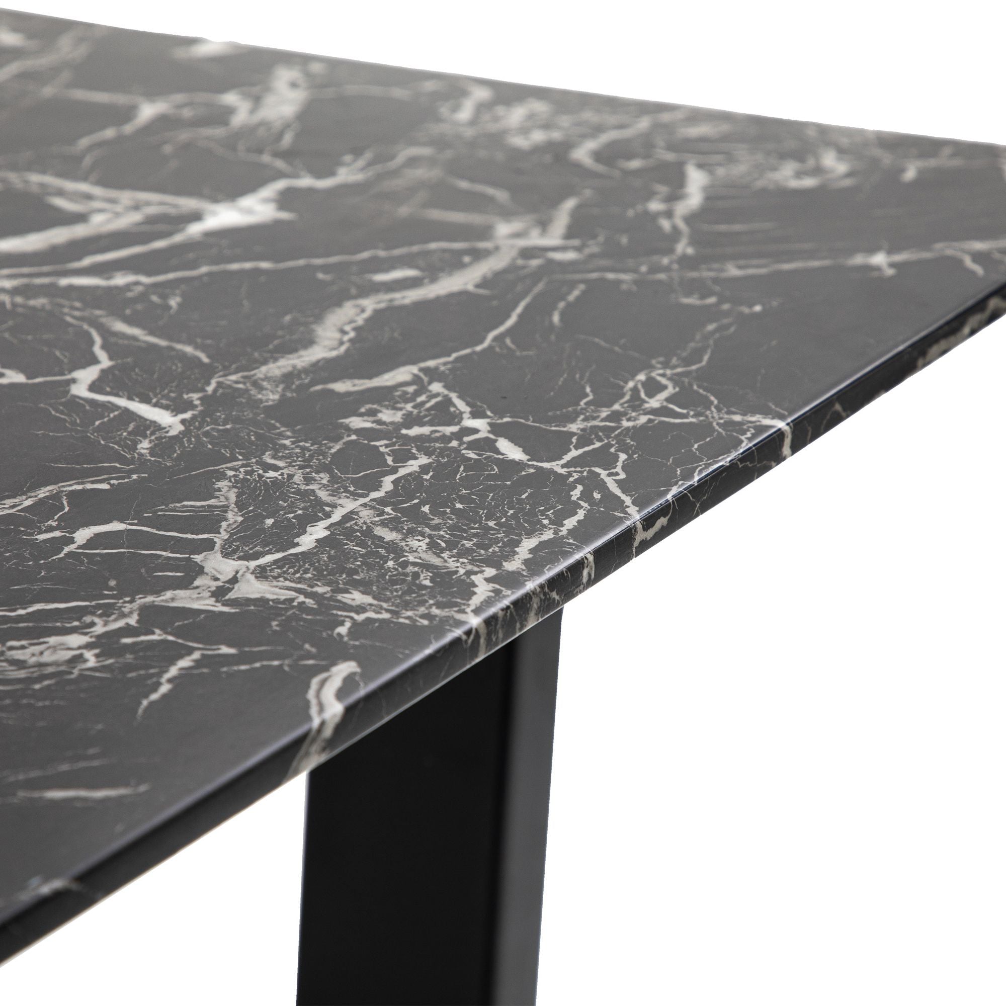 Stunningly modern and sophisticated, this table features a classic faux black marble glass top and distinctive angled black legs, creating a contemporary and stylish table you won't be able to take your eyes off. Perfect for bringing a modern touch to any dining space, the table seats 6.