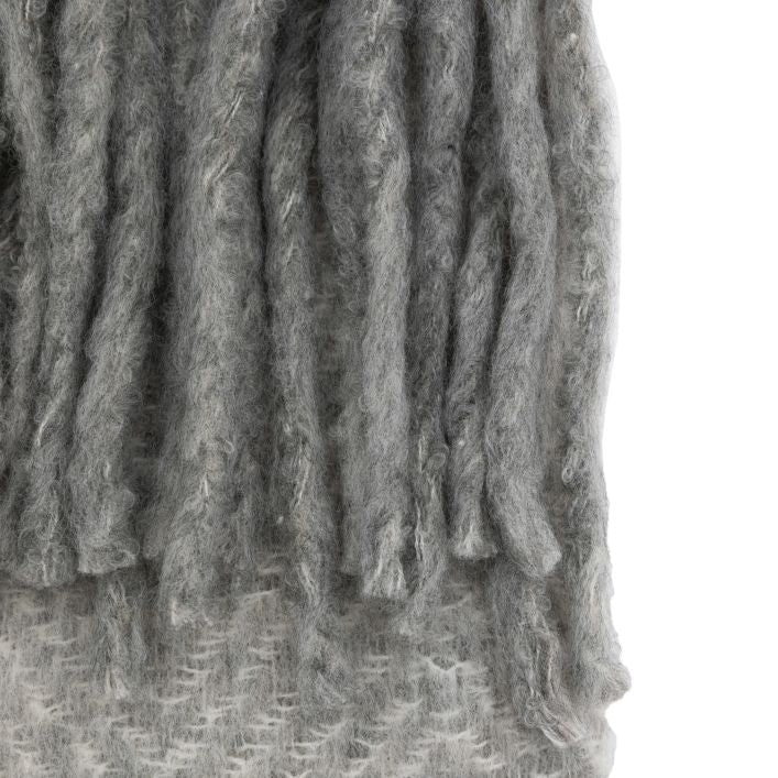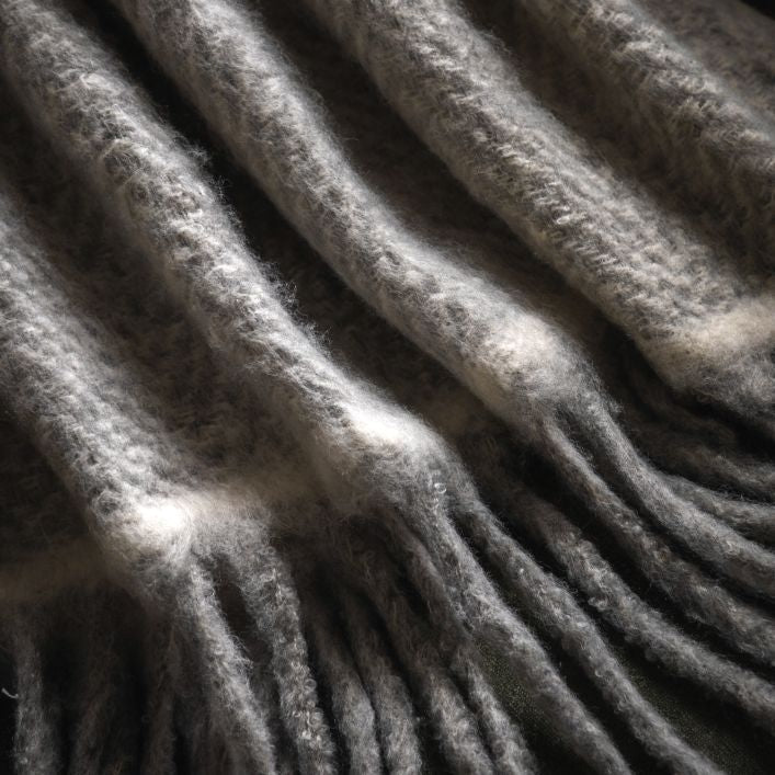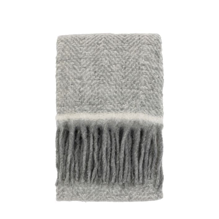 Super soft this Mohair throw will add a cosy touch to any room. The soft grey tone and subtle pattern is finished off perfectly with tactile fringing