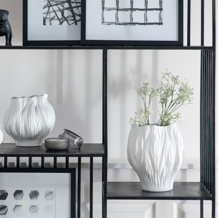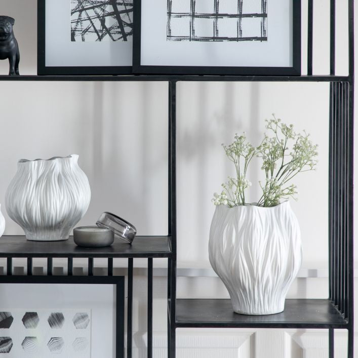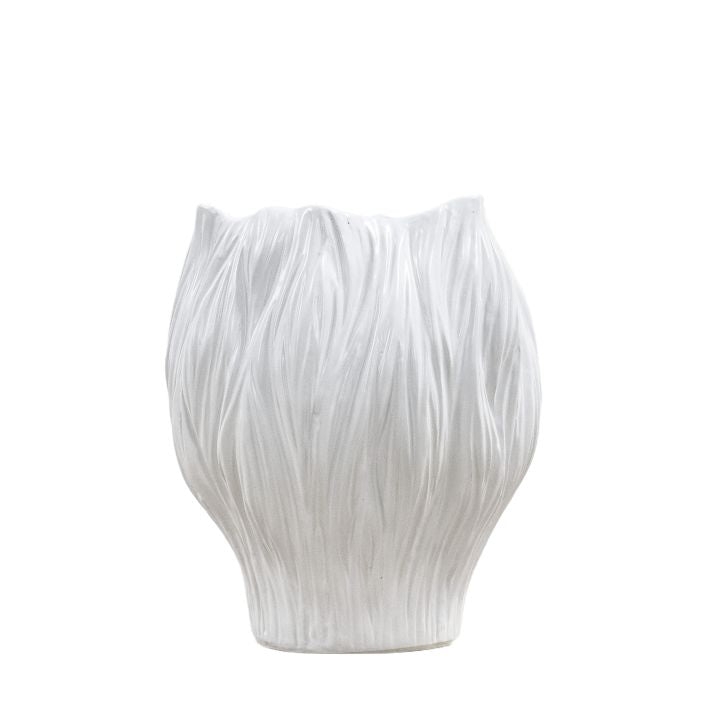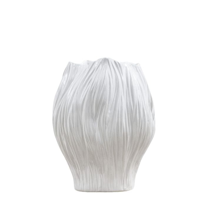 The lovely organic shape of this beautiful handmade ceramic vase is inspired by florals and is perfectly complemented by the semi matt white glaze.