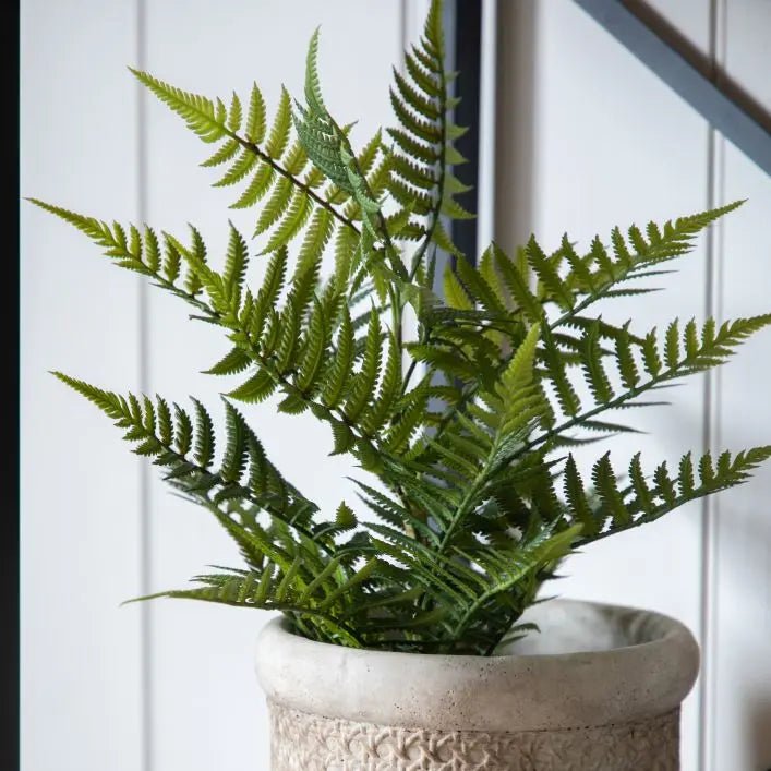 With its natural look and realistic coloring the lady fern is the perfect addition to any display. This fern is finished with a soil ball allowing it to be easily placed into a pot or planter.