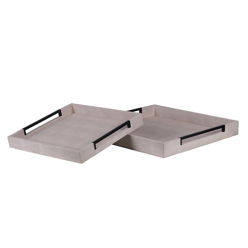 This faux shagreen finish tray looks great styled on a coffee table or ottoman. The taupey ivory faux shagreen is complimented by matt black handles.