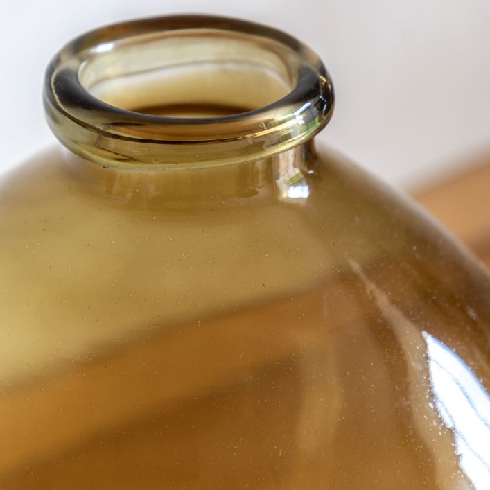 Handblown in a stunning organic shape this simple olive green glass vase will allow you to show off your flowers or simply add a pop of elegant colour to a room.