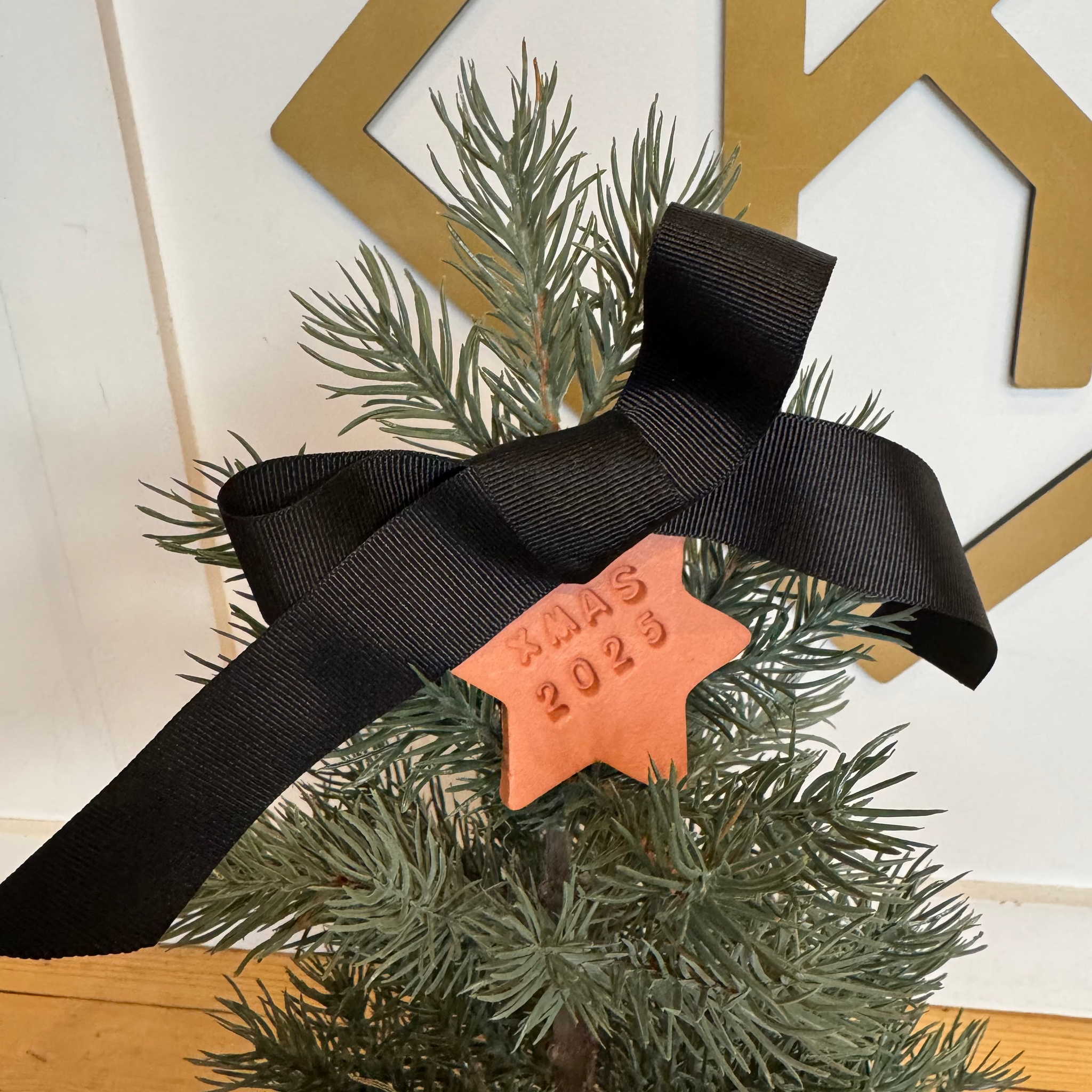 We've topped this tree with one of our personalised clay decorations, available to order separately.