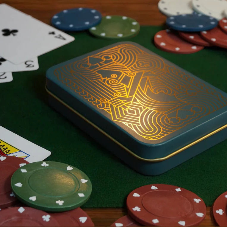 With a gold two-way geometric design, TINIT’s card tin adds a touch of class to your gaming setup. Rotate it 180 degrees, and watch as a king transforms into a queen, revealing a carefully woven tapestry of all the suits. Dive into the intricate details, and you'll find this tin to be a truly unique and artistic piece.