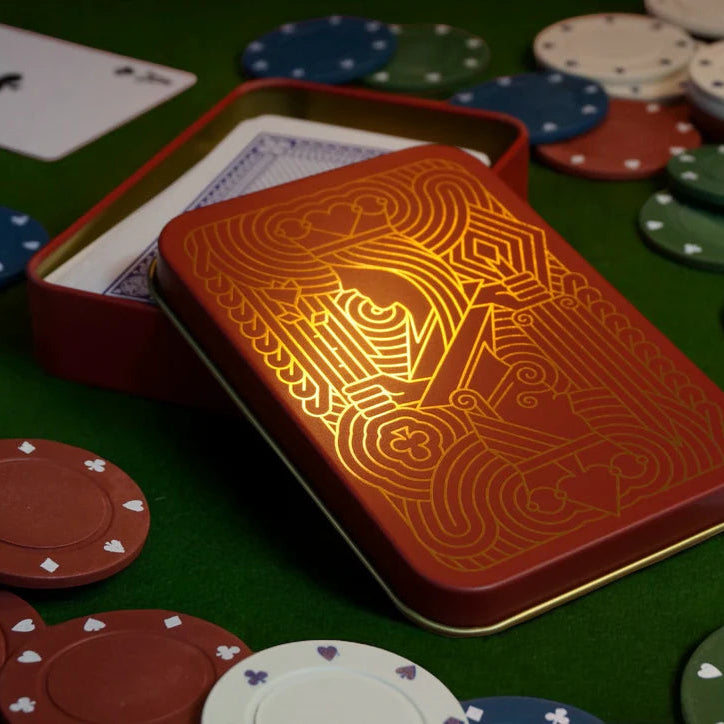 An elegant and functional card tin designed to elevate your card-playing experience. Crafted with precision, this tin is the key to securely housing your favourite standard deck of playing cards, ensuring they remain in pristine condition and are always ready for play.