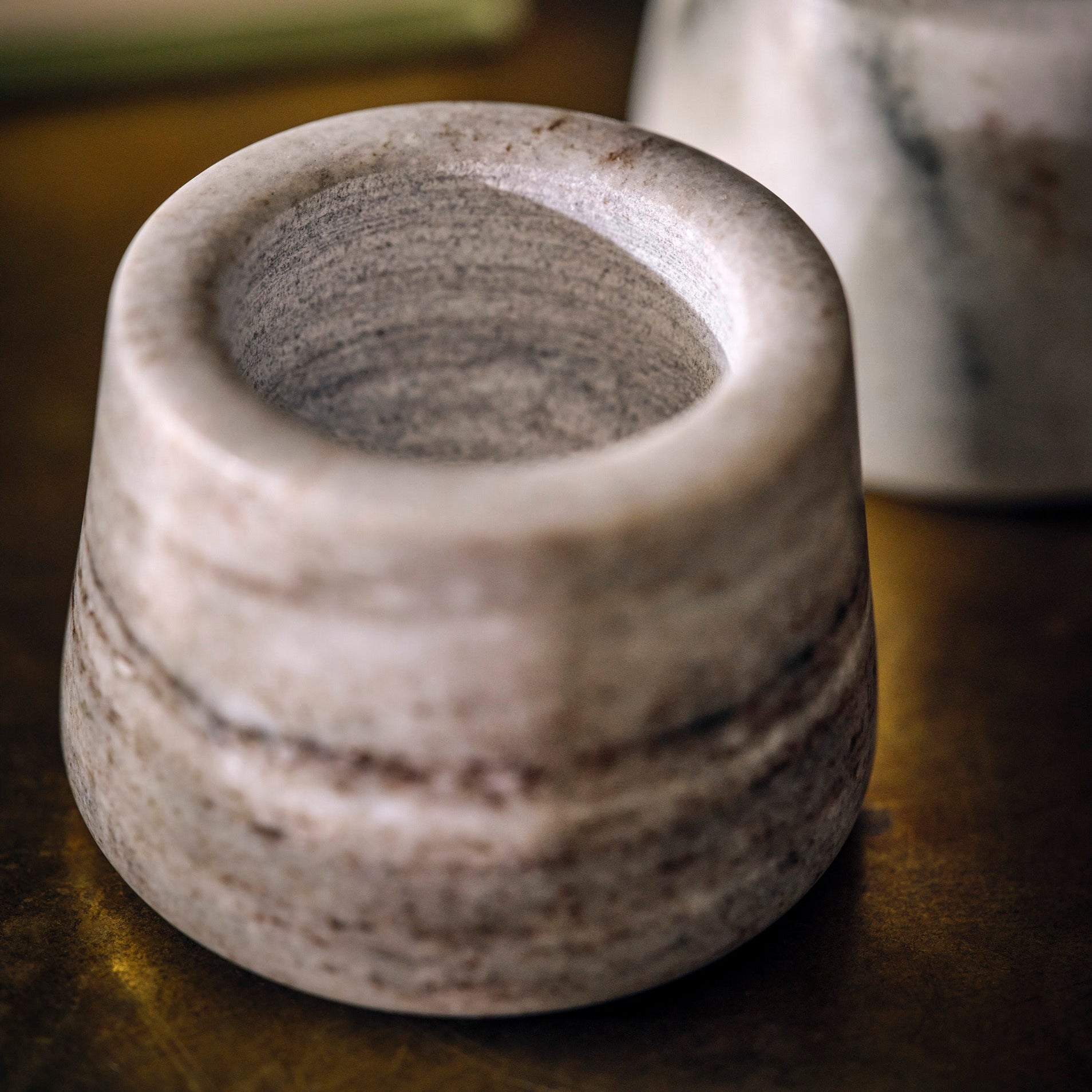 Sitting on the dining table for a candlelit dinner party or holding flickering tealights in the bathroom, the Osney Tealight Holders bring luxury and exemplary style wherever they go – even before the match is struck. This set of two is made from solid marble in a warm tone with a honed rather than shiny finish.