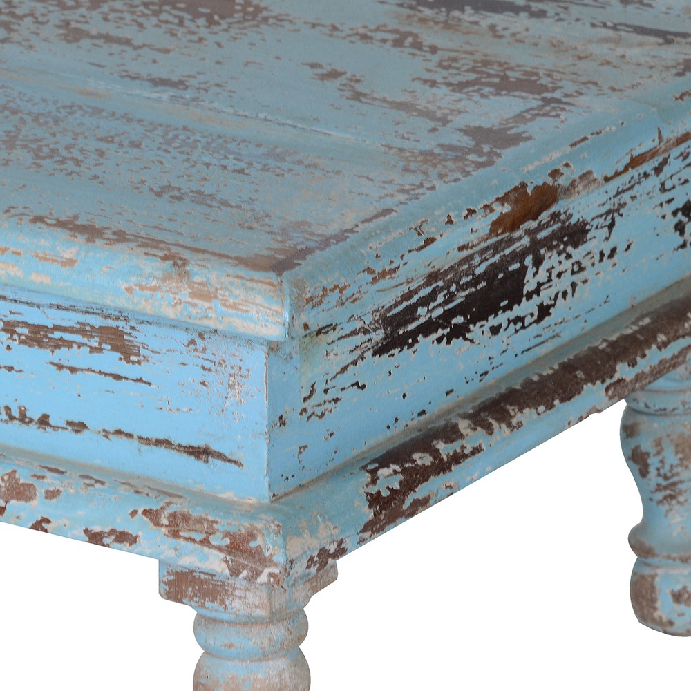 Traditionally used in Indian ceremonies as a surface for placing offerings such as flowers, bajots are beautiful in their own right. With a distressed blue paint finish, this bajot would look great topped with a vase full of blooms.